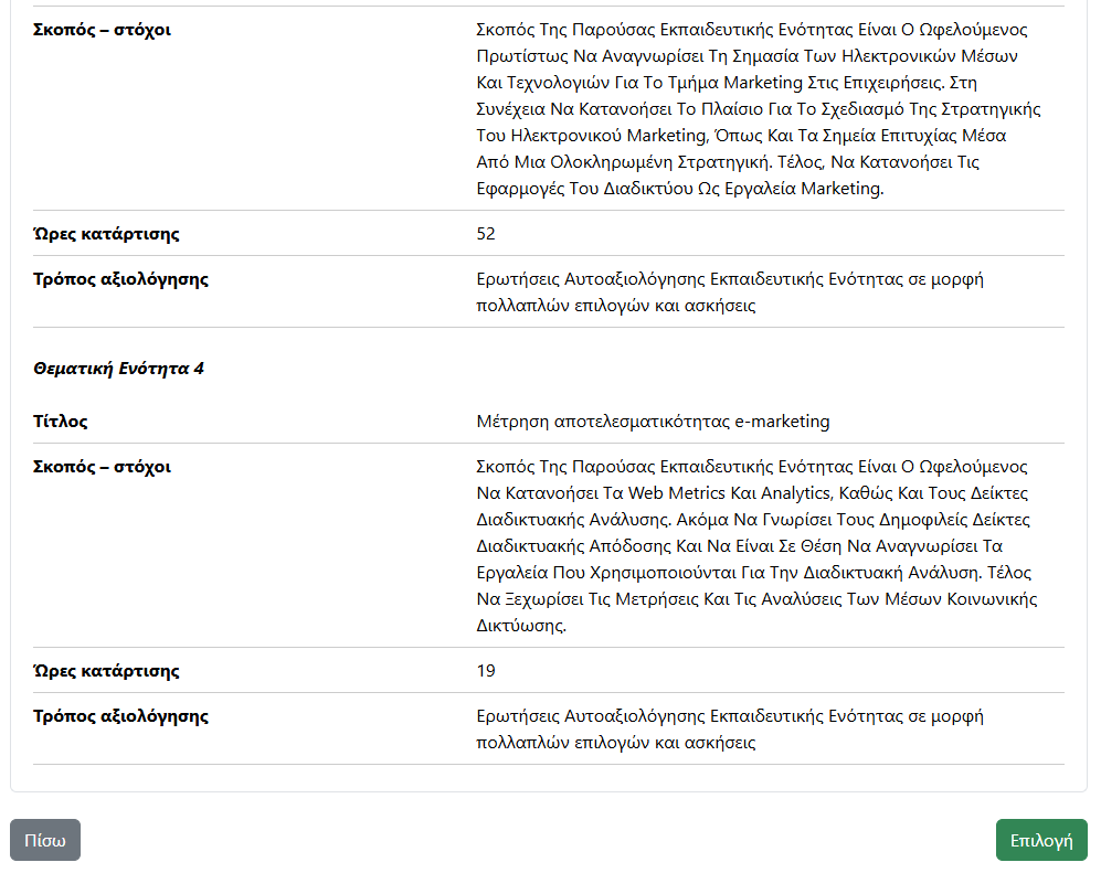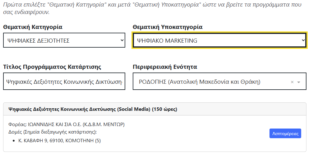 Τώρα περνάμε στο επόμενο στάδιο: την επιλογή αντικειμένου και παρόχου κατάρτισης.