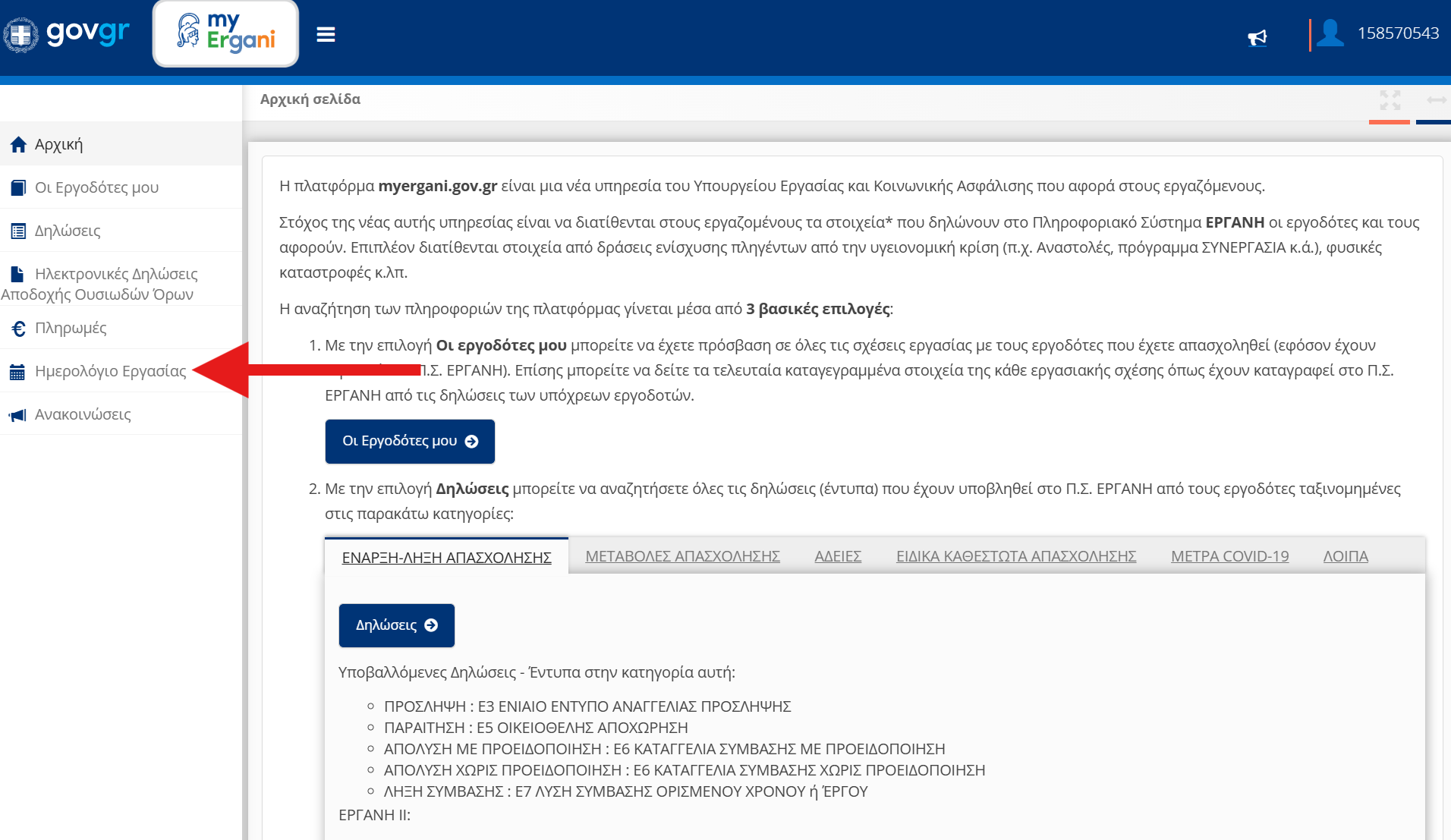 Συνδεόμαστε στο myergani.gov.gr. Η είσοδος γίνεται με τους κωδικούς taxisnet.